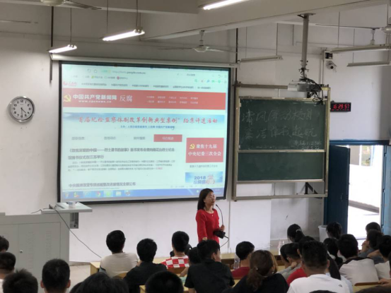 班会上,蒋利超以青年大学生为何要举办关于“廉洁”的班会这个问题为切入点,和同学们一起通过网络阅读廉政的相关文件和关注各地的反腐动态。对于廉洁清政这个问题,她说到,我们国家反腐永远在路上,不仅要治标,更要治本,从思想根源上下手,树立“三不”原则,让“不敢腐、不能腐、不想腐”的坚定信念深入人心。而同学们作为青年大学生,正处于树立正确的世界观、人生观、价值观的成长重要阶段,要重视自身道德修养的培养。同时她结合中美贸易战的最新动态,建议同学们平常要养成关注时事动态的好习惯,通过国家官方网站比如人民网、《学习强国》APP、《永远在路上》《红色通缉令》等官方纪录片获取正确消息,坚定“四个自信”,提高政治素养。会议最后,蒋利超也提出了对同学们的期望,希望同学们能把所掌握到的知识技能落实到实际学习、工作中,树立正确的理想信念,校园的清风正气需要依靠我们每个人的努力,从我做起,齐心协力,共同营造清风正气、积极健康的校园文化和校园风气。