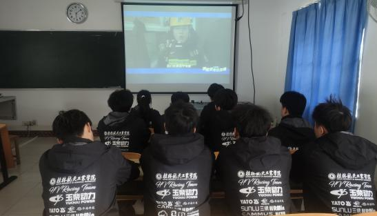 ●航V车队成员在车间观看消防公开课