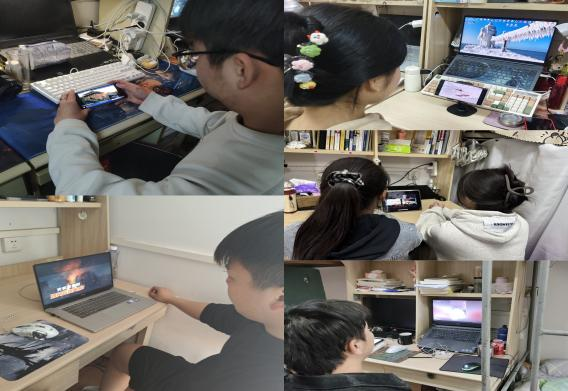 ●同学们在宿舍观看消防公开课