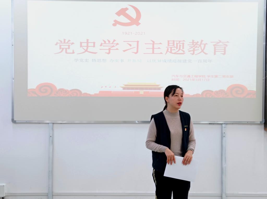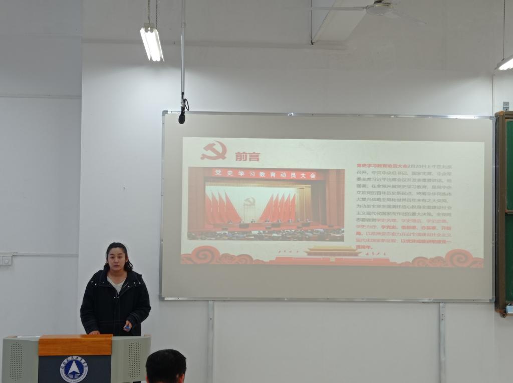 在党员大会上,马楠书记和刘圣涵老师带领学生党员们回顾了党在百年时间里克服艰难险阻的血泪史以及以在以党为领导核心的百年时间里我国在革命、建设和改革历程中,取得的一系列重大成就;向全体学生党员传达了了习近平总书记在北京召开的党史学习教育动员大会重要讲话精神,强调“开展党史学习教育是党政治生活的重要大事”,提出我院学生党支部要围绕“深刻铭记奋斗历程、深刻认识伟大贡献、深刻感悟初心宗旨、系统掌握理论成果、学习传承伟大精神、深刻领会宝贵经验”六方面学习内容高标准高质量的开展党史学习教育,带领我院学生党员学党史、悟思想、办实事、开新局,以优异成绩迎接建党一百周年,指出我院全体学生党员要紧扣“学史明理”、“学史增信”、“学史崇德”、“学史力行”四个项目要求,把党史学习教育融入到学习工作中,继承和发扬党的优良传统。