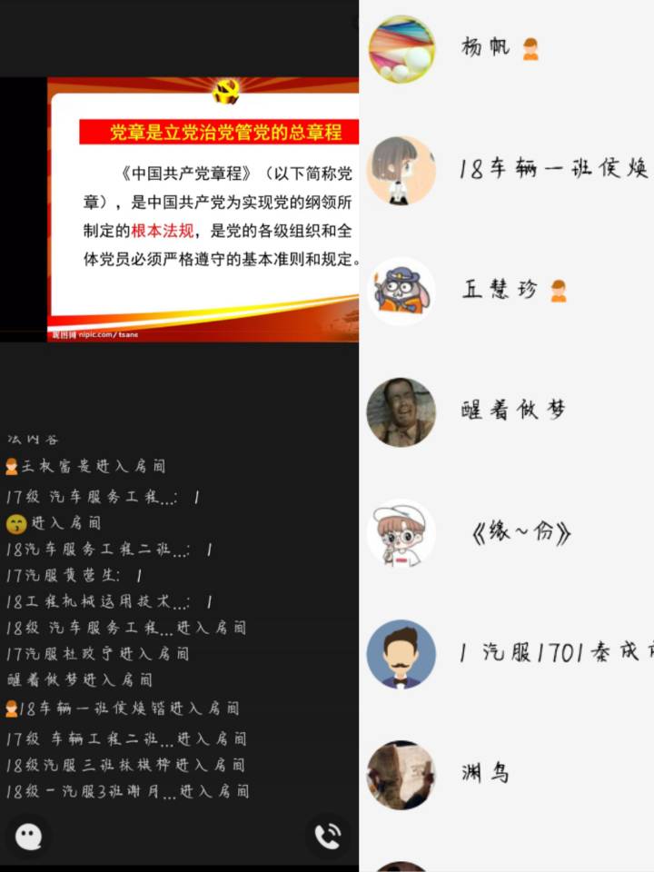 为进一步增强党员党性观念,2020年11月30日下午,汽车与交通工程学院学生党支部开展以“认真学习党章,严格遵守党章”为主题的线上学习党课。学院全体党员学生参加了党课学习活动,本次党课由我院2018级辅导员杨帆担任主讲。