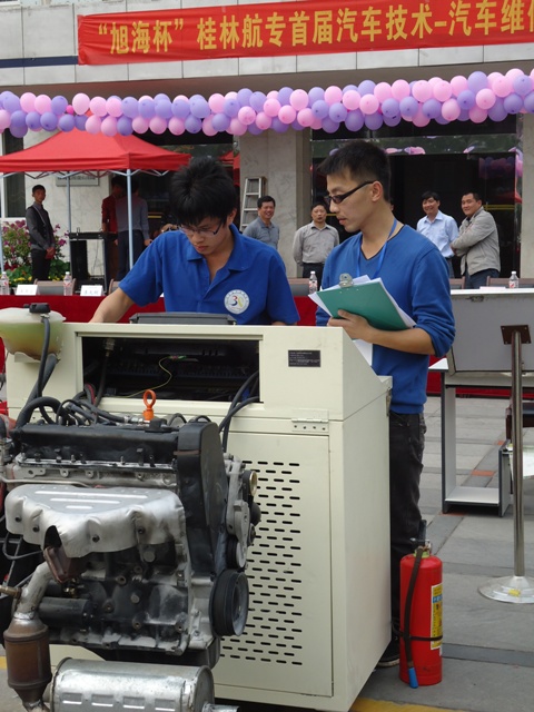 11月22日,由教务处、学工处主办,汽车与动力工程系承办的“旭海杯”桂林航专首届汽车技术-汽车维修技能大赛决赛在学校腾飞广场举行。副校长罗国湘、教务处、学工处、汽车与动力工程系和南宁旭海商贸有限公司(本次比赛的赞助商)的负责人莅临比赛现场指导。