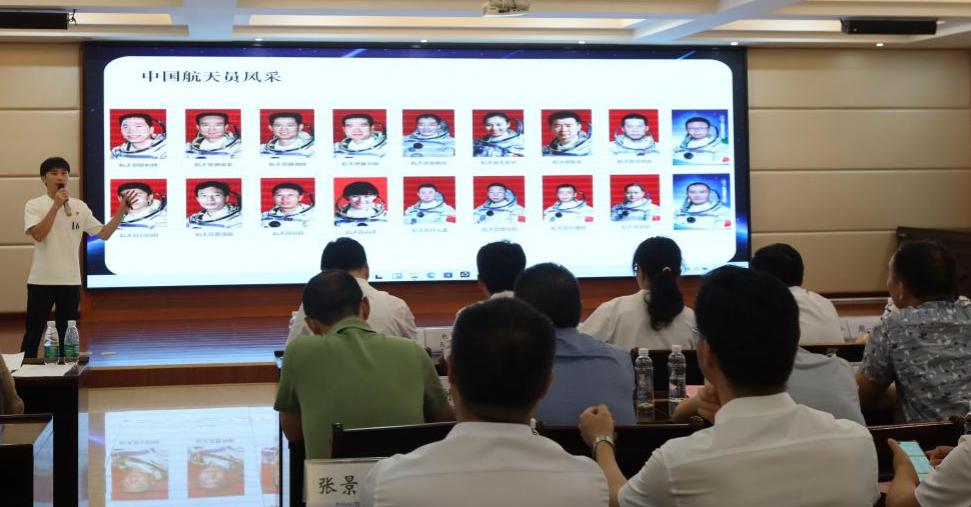 林万凭同志以“中国航天,逐梦星辰”为主题讲述了航天英雄周湘虎的故事,通过英雄故事告诉我们要弘扬和践行“特别能吃苦、特别能战斗、特别能攻关、特别能奉献”的航天精神,要勤于思考,善于创新,克服困难,勇往直前追逐属于我们的那片星辰大海。