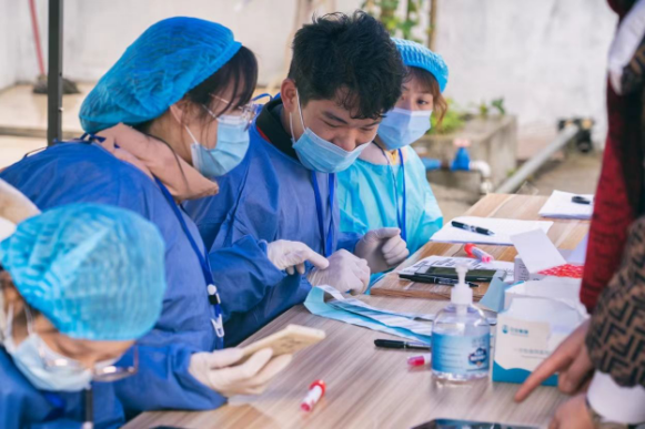 在百色突发疫情情况下,身处其中的2021级新能源2班王艺富同学投身于志愿服务活动之中,协助达巴村村委书记和医护人员进行核酸检测工作,体现青年志愿者“勇于担当,敢于担当”的志愿精神。