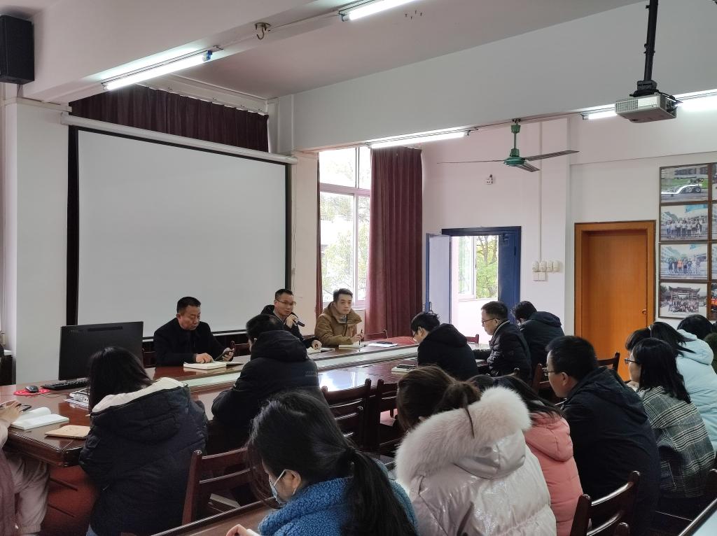 2月25日,2022年春季开学第一天,我院全体教职工到学院办公楼坐班,各项工作有序开展。下午14:00,我院召开2021年春季学期第一次例行会议,学院党总支副书记李迪辉、副院长唐学帮以及全体教职工参加会议。