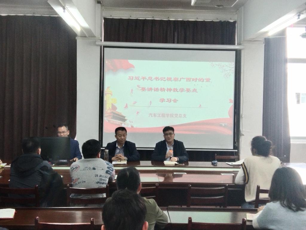 10月15日,我院在学院会议室召开《习近平总书记视察广西时的重要讲话精神教学要点》学习会议,我院党总支副书记李迪辉、副院长陈元华、副院长唐学帮以及我院全体教职工参会。