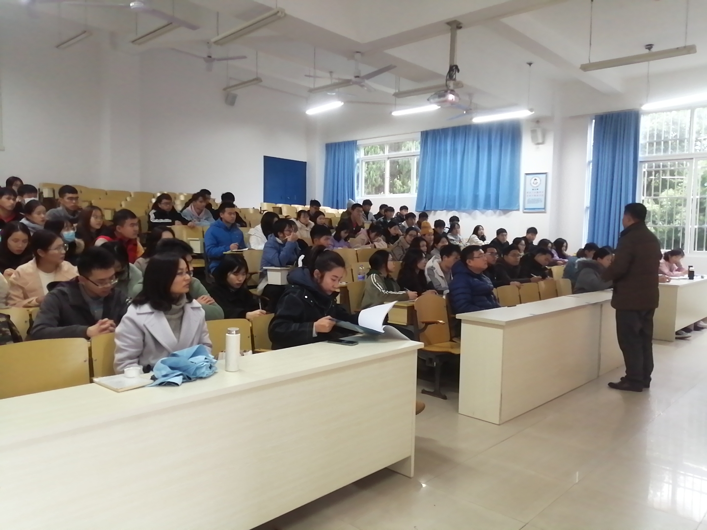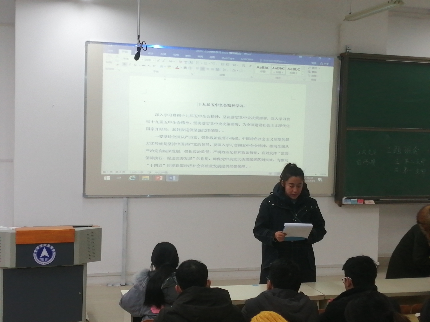 大会进行第一项议程由马楠书记作述职报告,综述这一年来党支部的取得的工作成绩,也指出工作中存在的不足与问题以及党支部未来的工作规划。马楠书记紧接着进行大会第二项议程,她带领全体党员学习十九届五中全会精神与习近平总书记重要讲话。通过本次学习,坚定了党员同志坚定了发展信息,明确了发展目标,强化了党员的责任和担当。在大会开展民主评议会,全体党员以无记名方式对党支部的工作进行评价并开展党小组会进行党员互评与党员自评。最后学院党总支副书记李迪辉同志对此次大会作了点评:一是所有党员应该具有领头羊、标杆、先锋队作用,在所有方面都要积极主动;二是党员同志要积极团结同学,发挥党员的战斗堡垒作用;三是学生党员应走在学风建设前列,以党员的身份严格要求自己。