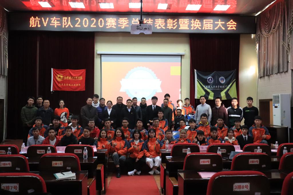 航V车队2020赛季总结表彰暨换届大会于2020年12月1日下午在北校区电教馆隆重举行。学校副校长孙山林、教务处、学工处、汽车与交通工程学院负责人,车队指导老师,车队队员等共100余人参加大会。