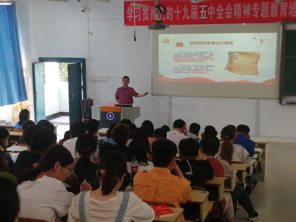 2020年11月19日中午12:30,我院进行十九届五中全会精神学习培训。本次培训由桂林市党校黄革新副校长主讲,我院党总支书记张云、党总支副书记李迪辉、副院长陈元华、副院长唐学帮及我院全体学生党员参加培训。