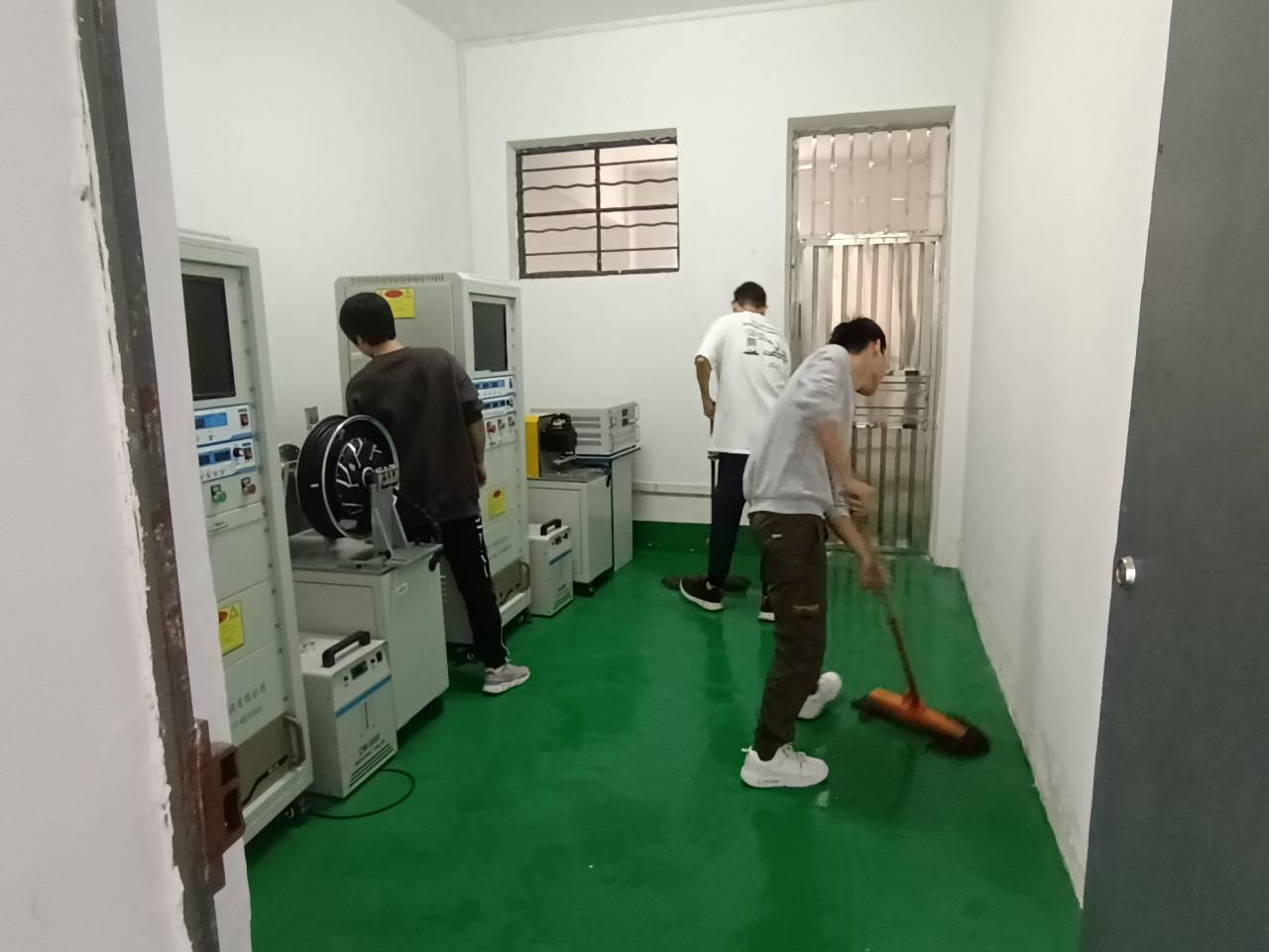 各小组人员对办公室和车间实验室地面、墙面、玻璃门、走道、楼梯、功能间等区域进行全面环境清洁;对实验室内设施设备进行维修和更换;对墙面、消防栓等部位牛皮藓进行集中彻底的清理;全面开展了规整和清理;对部分门口地面凹陷、墙面油漆脱落进行填充和修复,确保整洁统一,努力为评估工作营造整洁的生活环境。