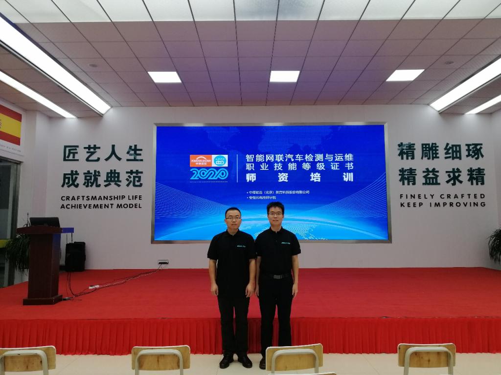 为深入推进落实我校作为全国首批1+X证书试点院校的制度实施,我院选派张瑞宾、闫军等两位骨干教师于10月11日-17日赴安徽机电技师学院-中德诺浩校企合作高水平实训基地参加 “智能网联汽车检测与运维”1+X证书线下师资培训。