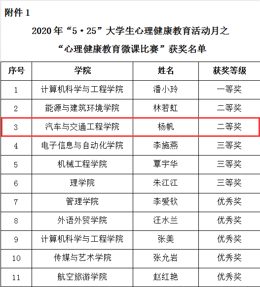 祝贺我院辅导员杨帆老师在2020年桂林航天工业学院组织开展的大学生“5·25”心理健康教育微课比赛中荣获二等奖!
