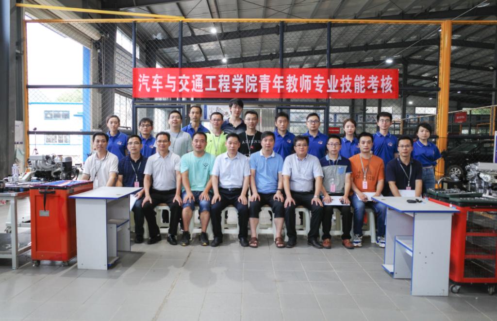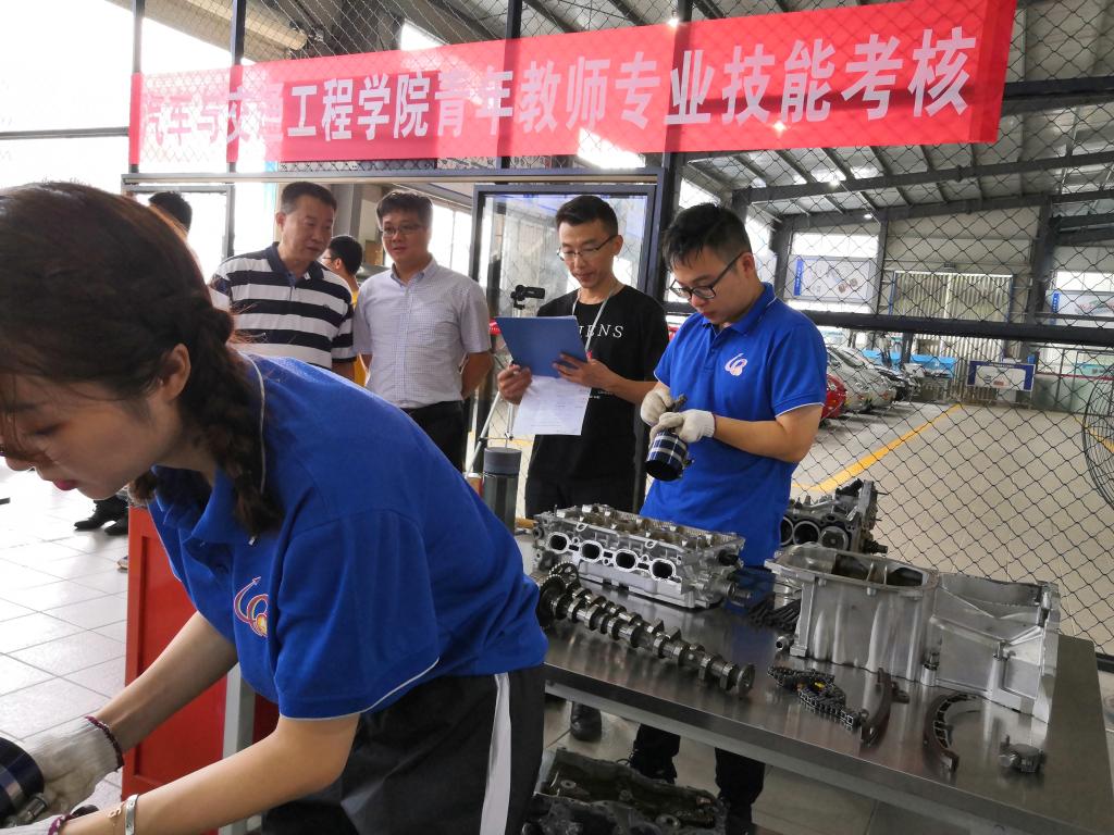 为加强学校师资队伍建设,提高教师专业素质,激励我院教师重视和坚持汽车专业实践教学能力训练,全面提高教学质量,我院于7月18日上午8点30分在学院实验与实训教学中心开展了2020年汽车与交通工程学院青年教师专业技能考核活动,本次考核有参考教师11人,考评员8人,同时吸引了全院教师到考核现场观摩学习。考核期间,副校长孙山林、教务处处长王国富以及我院党总支书记张云、党总支副书记李迪辉、副院长陈元华、副院长唐学帮等亲临现场指导考核工作。