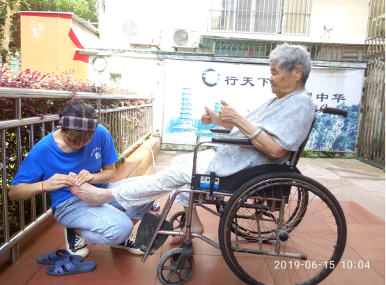 活动期间,同学们先和敬老院的工作人员进行沟通,然后给老人分发提前买好的水果和营养品,对老人进行慰问,了解他们的日常生活,也为老人们按摩、捶背,并打扫卫生,都积极地为老人们做自己力所能及的事情。同学们在与老人交流中,对老人们的生活也有进一步的了解。如其中一位90多岁的老人,通过聊天得知,他原本户籍在上海,因久居迁来本市,儿女在外工作。如今90多岁高龄的他,除了听力不太好,身体还算硬朗,头脑清醒、思维清晰。对于现在的生活,他表示很满足,对于我们的到来,他表示很高兴。