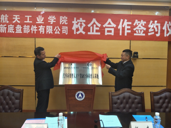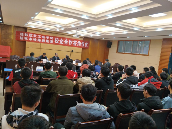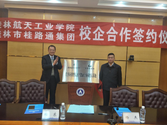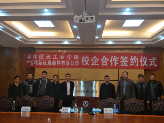 12月18日下午,我院与桂林市桂路通集团、广西鸣新底盘部件有限公司的校企合作签约暨揭牌仪式在南校区飞天楼517会议室举行。副校长杨杰,桂林市桂路通集团董事长程东、广西鸣新底盘部件有限公司总经理陈中敢等公司主要领导,科技处、机械工程学院和我院主要负责人及师生代表70余人次参加仪式。