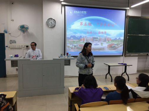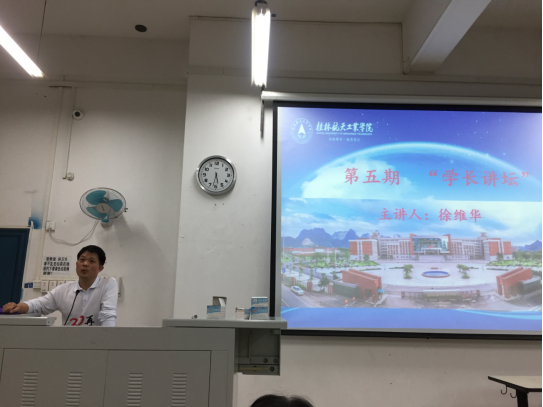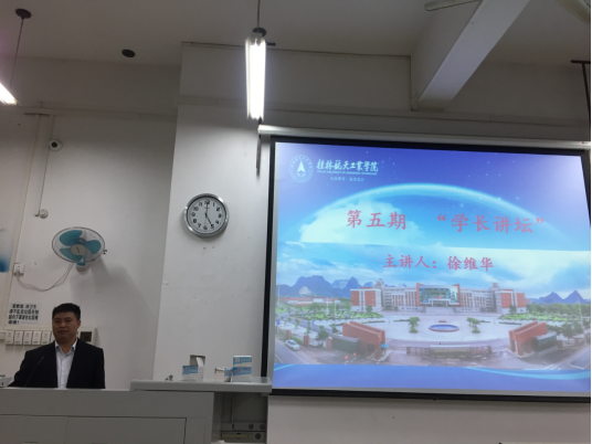 首先,徐维华和大家分享在校期间的学习情况和生活中的趣事,跟同学们共同追忆他的青葱岁月,并毫无保留地与学生们分享他在学习、生活、工作、做人等方方面面的感悟。并根据自己毕业后20年的工作经验对在校的师弟师妹们提出一些要求和忠告:第一,要加倍珍惜在校的时光,做到好好学习,努力提升自己的专业能力,切勿虚度光阴;第二,要知道合理规划、学会设立相应的目标、抓住每个实践锻炼的平台和机会,努力尝试,积极反思总结;第三,重视自身专业的发展,努力提升专业技能等等。