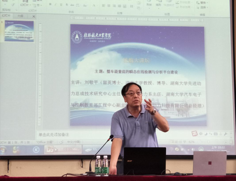 刘敬平教授从车用动力总成的现状及发展趋势、车用动力总成能量流及控制参数的整车在线检测与分析、整车以及动力总成能量流的仿真与优化三个方面给在场师生深入阐述了乘用车用动力的现状和发展趋势、面临的挑战、控制优化的关键技术和实现方法。刘教授的学术讲座紧扣业内前沿技术、内容丰富、专业性强,为专业师生清晰了解专业前沿知识和专业最新发展动态,明确今后学习、研究的主要方向提供了十分有益的帮助。