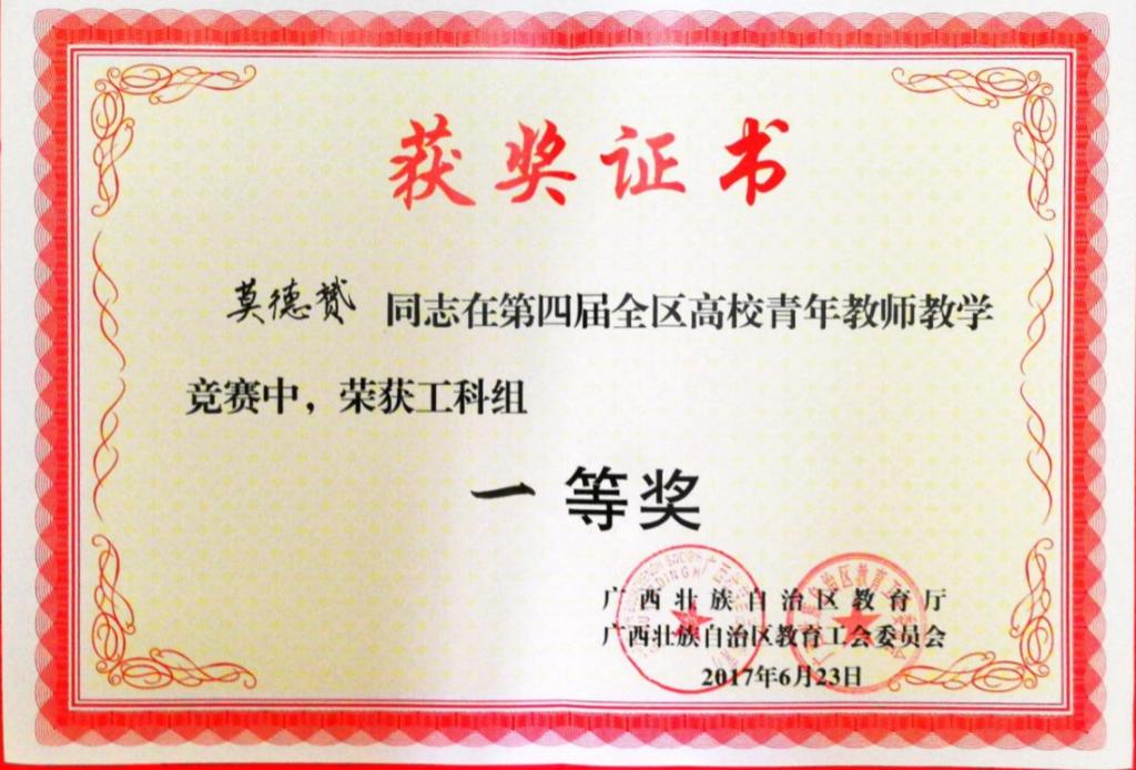 我院莫德赟老师在刚刚结束的第四届全区高校青年教师教学竞赛中荣获工科组一等奖。