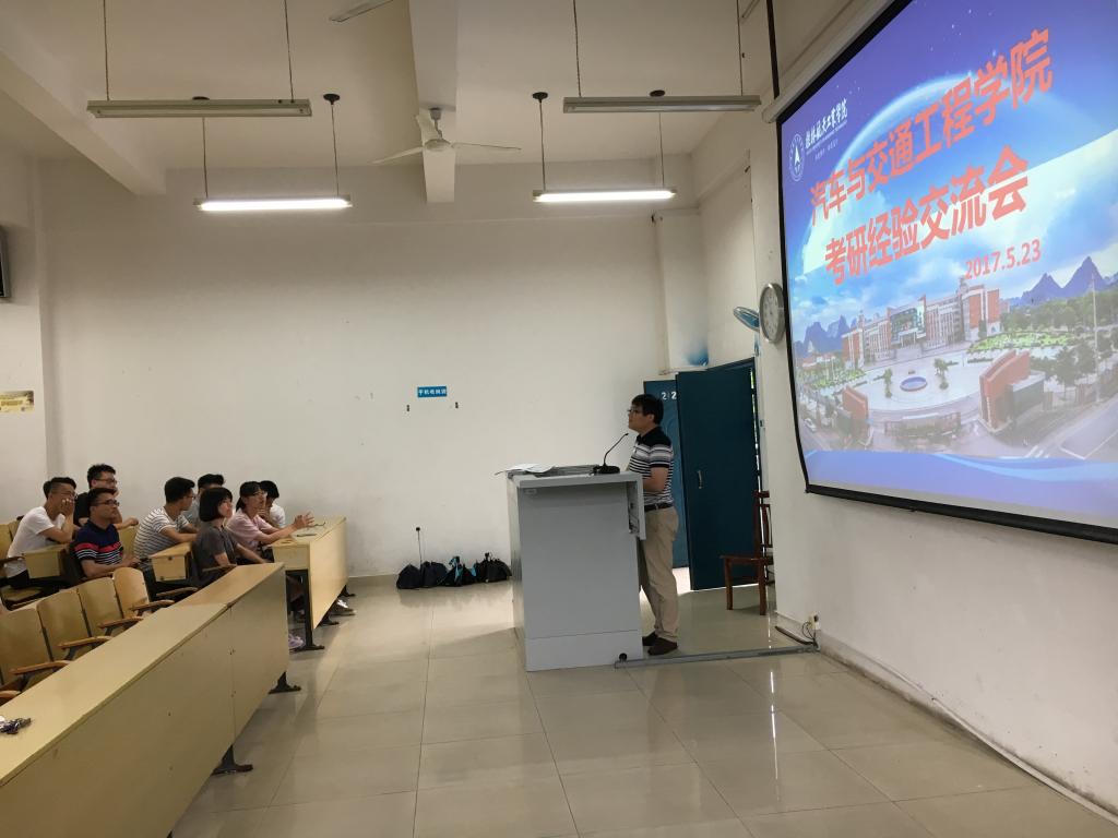 交流会首先由陈元华院长致辞并宣布讲座开始。之后由考上研的几个同学介绍他们的考研经历和学习经验。考取武汉理工大学的罗统波学长作为总代表为我们详细介绍了考研复习经验和每门课程复习注意的事项,并就对自己如何规划时间以及怎么应对复试都做了详细的介绍。考取上海师范大学的刘安洁学姐和桂林理工大学的张义哲学长为同学们介绍跨专业考研的经验,不用经过复试在初始阶段通过夏令营活动的周燕燕学姐介绍了自己考取重庆大学的经验。接着,陈院长向大家描述了考取研究生的意义及就业前景,理清考研动机。最后,同学们现场提问了在考研过程中遇到的问题、考研如何择校等问题,学长学姐都做了耐心的解释。