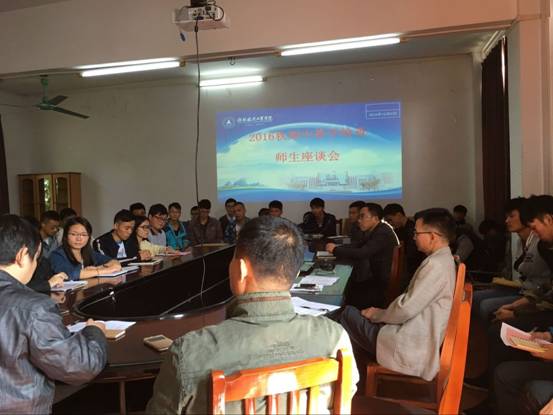 11月3日中午12:30,我院在学院会议室召开2016年秋季学期期中师生座谈会。学院三位领导、教研室主任和实验中心主任、教学秘书及35名各班学生代表参加了本次会议。