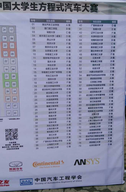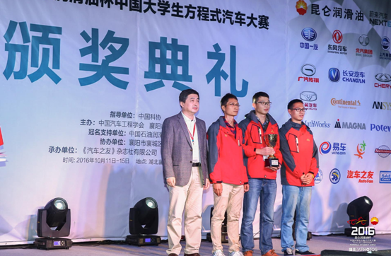 10月11日~15日,由中国汽车工程学会举办的“2016昆仑润滑油杯中国大学生方程式汽车大赛(FSC)”在湖北襄阳梦想方程式赛车场隆重举行。本届大赛共有79所高校的车队报名参加,其中包括:清华大学、同济大学、吉林大学、北京理工大学、浙江大学、上海交通大学、西安交通大学、北京航空航天大学、湖南大学、天津大学等国内知名高校。