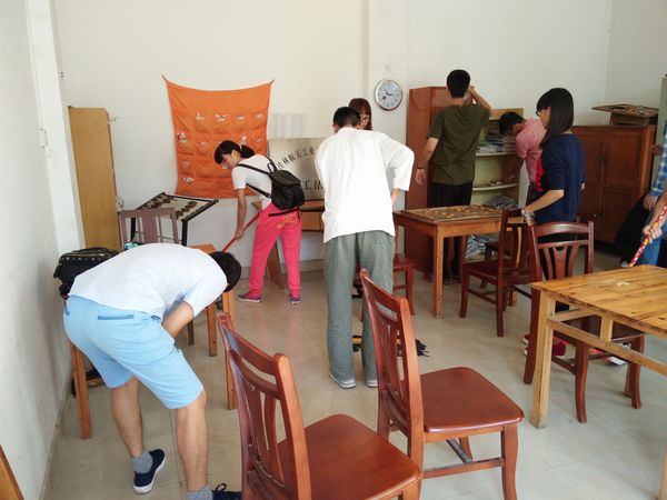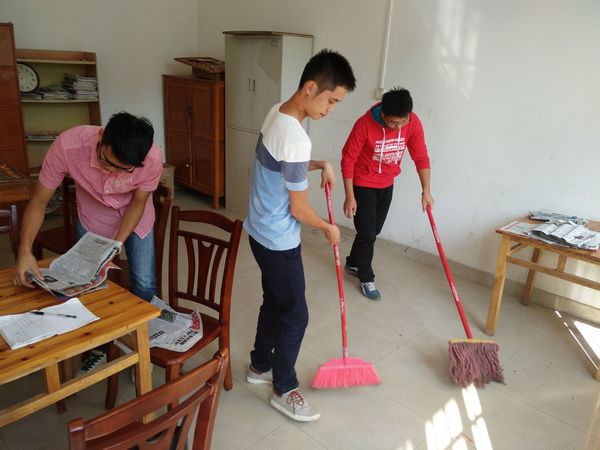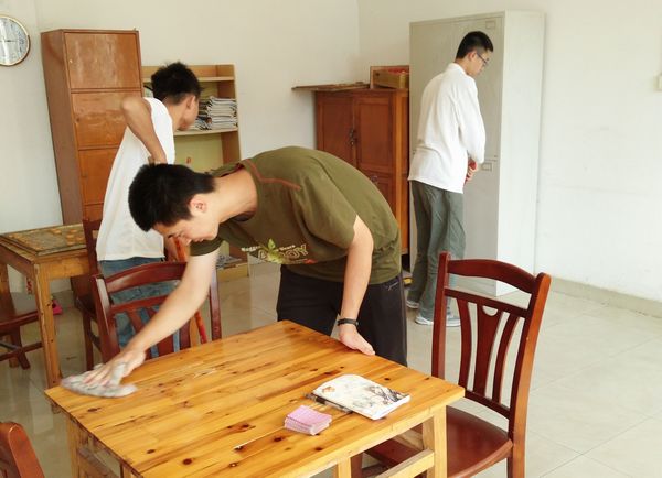 学校家属区老年活动室里同样传来了阵阵欢笑,学院学生党支部学生党员们用实际行动将活动室打扫得干净整洁,为退休教师们提供了一个舒适的活动环境。