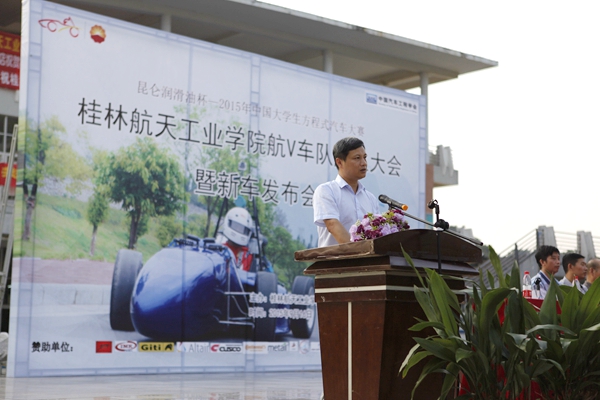 汽车与交通工程学院负责人李天明向大家介绍了团队的筹备与组建过程,宣布桂林航天工业学院航V车队正式成立。
