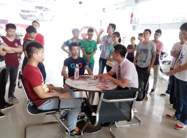 在实习的过程中,4S店的销售经理和售后经理分别就汽车销售和汽车售后服务的流程和技巧给同学们做了讲解。他们把自己的工作经历和同学们一起分享,并在讲解销售流程的时候通过情景再现的形式请同学们参与进来,气氛非常好,同学们也收获颇丰。