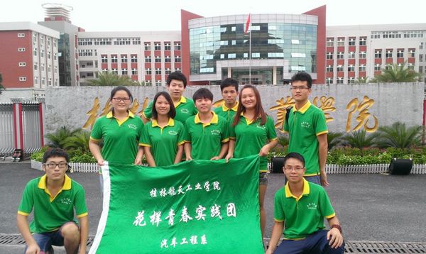 该系积极响应共青团大学生暑期“三下乡”社会实践活动要求,组织“花样青春实践团”“感恩家乡,爱心支教实践队”“汽车专业观察团”等社会实践队伍,进入乡村、地方政府、汽车工厂等开展社会实践及志愿服务活动。他们有的走进桂林灵川兰田民族小学开展暑期支教活动,就农村生活、教育状况进行了走访调查,并与农村孩子们开展了有益的课内课外教学活动;有的走进敬老院、农村留守老人家中,为老人们送去温暖与关爱;有的小分队进入乡村展开社会观察,对“美丽广西·清洁城乡”的成果建设进行实地调研,为大学生进一步开展“美丽广西”志愿活动提供依据;有的则在美丽的桂林山水间,顶着酷热,为第五届中国桂林国际旅游博览会的举办进行志愿服务活动。
