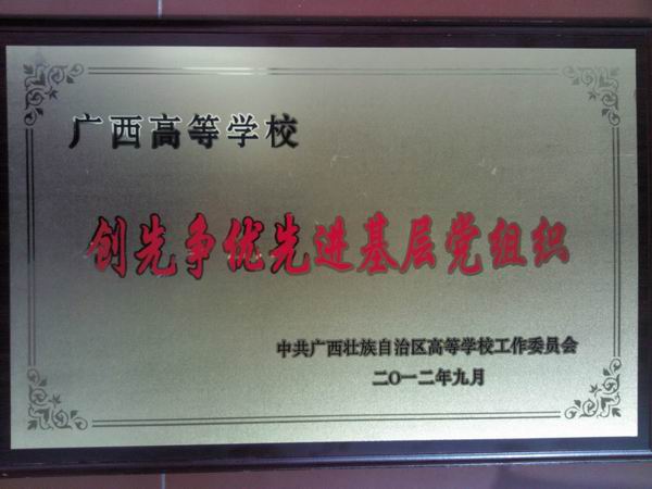 近日,我系学生党支部受自治区高校工委表彰,喜获“广西高校创先争优先进基层党组织”荣誉称号,是我院本次获该荣誉的唯一学生党支部,也是该支部继获“2010-2012年桂林航天工业学院创先争优先进基层党组织”荣誉称号之后喜获的又一殊荣。