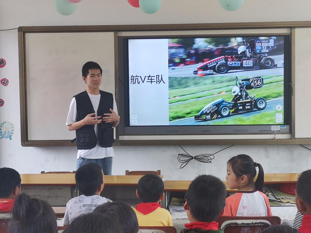 活动开始前志愿者向孩子们表示节日的祝福,并向辛勤耕耘在教育一线的教师们致以诚挚问候。随后志愿者采用“提问+视频+互动”的方式进行讲授,提问激起同学们的兴趣与热情,视频帮助孩子们更好地理解汽车发展史,近距离互动增强了积极性,课堂氛围热情浓烈。志愿者在讲解完毕后,还与孩子们进行亲切互动,细致询问他们的生活和学习情况,鼓励孩子们努力学习,以优异的成绩回报社会、回报祖国。