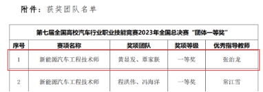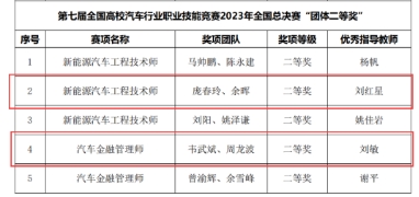 在“新能源汽车工程技术师”赛项中,由我院张治龙老师指导的黄显发、覃家朕团队荣获一等奖,刘红星老师指导的庞春玲、余晖团队荣获二等奖;在“汽车金融管理师”赛项中,由刘敏老师指导的韦武斌、周龙波团队荣获二等奖;在“二手车鉴定评估师”赛项中,由万运斌老师指导的韦武斌、周龙波团队荣获二等奖。