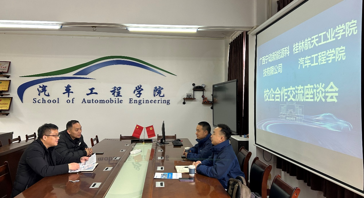 12月27日,广西宁动新能源科技有限公司经理付国云、产教融合部负责人黄江宏一行来我院洽谈毕业生实习就业及校企合作事宜,学院书记、院长陈元华、学院副书记李中焘和学院院长助理姚远老师等参加会议。