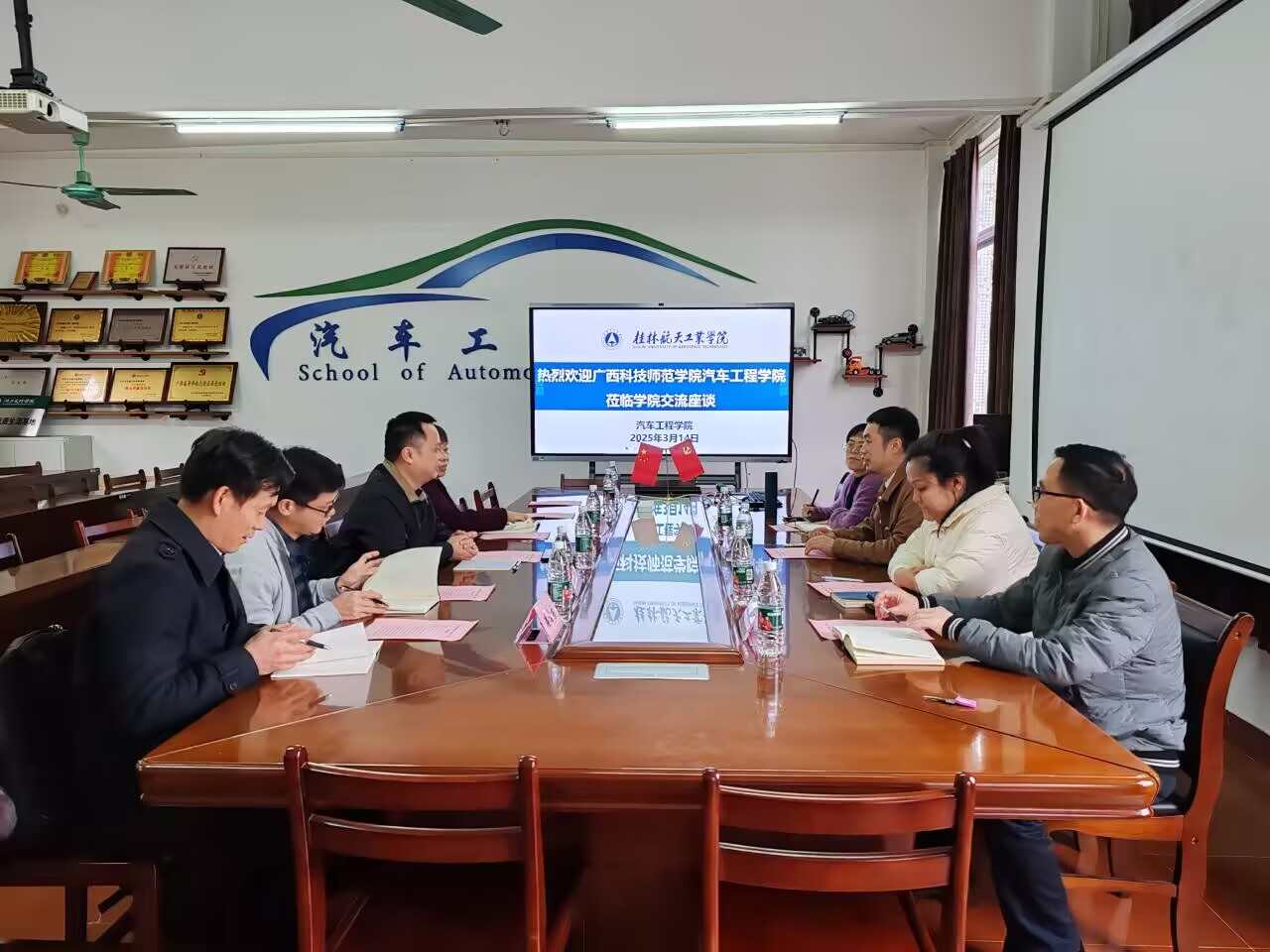 座谈会上,双方聚焦新时代汽车工程学科建设展开深度对话。莫德赟副院长系统介绍了我院基本情况、汽车后市场产业学院建设及"航V"大学生方程式车队、节能车队等项目的创新实践。钟伟民副院长则分享了该校在应用型人才培养模式改革、校企协同育人机制建设方面的探索经验。与会人员围绕一流专业建设、现代产业学院建设、大学生车队建设等议题进行了充分研讨并达成多项共识。