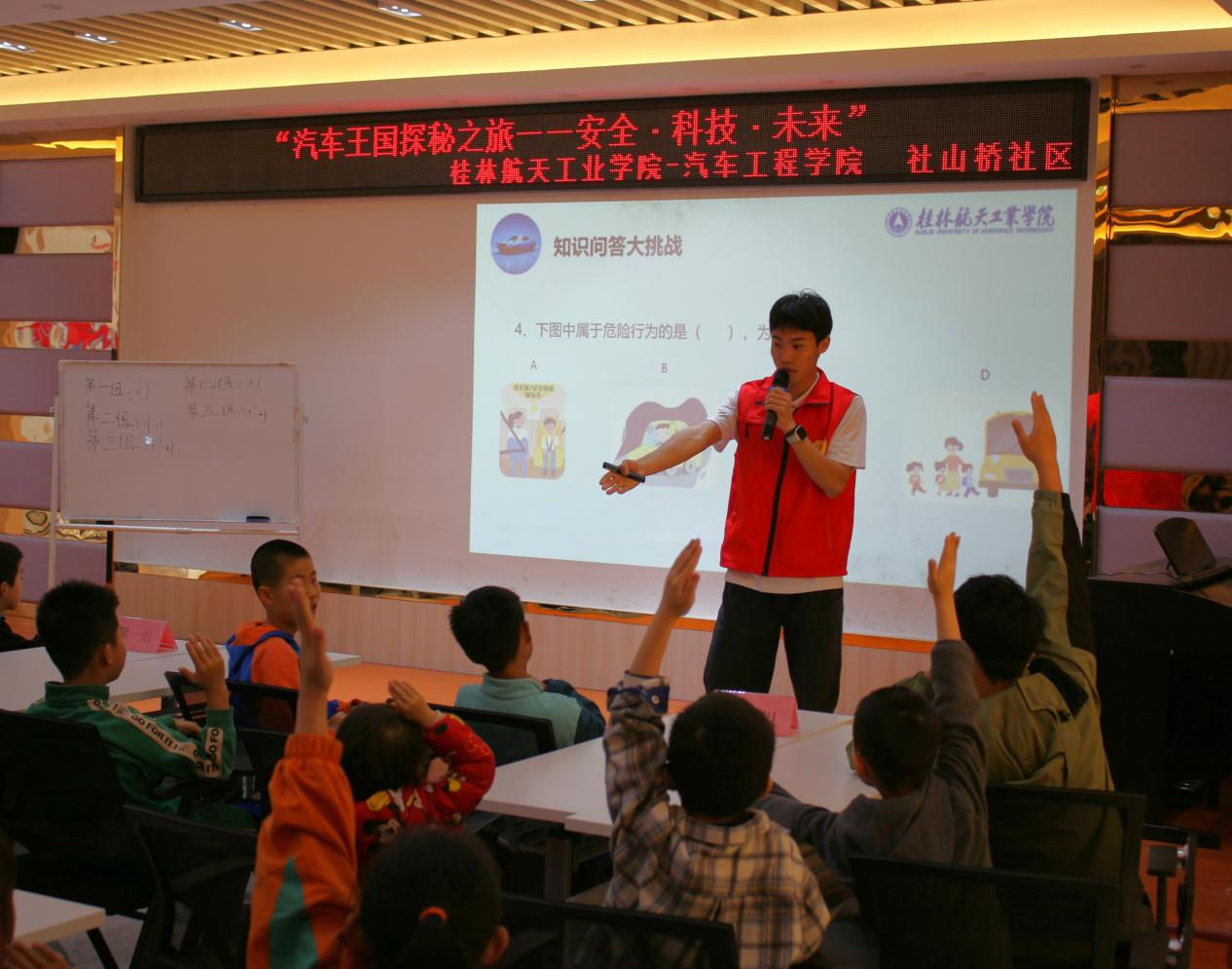 4月13日上午,欢声笑语不断,桂林航天工业学院伟德国际1949始于英国“青春志愿行,温暖社区情”团队策划的“汽车王国探秘之旅——安全・科技・未来”科普活动在桂林市七星区社山桥社区成功开展,30名社区小学学生及家长代表参与其中。