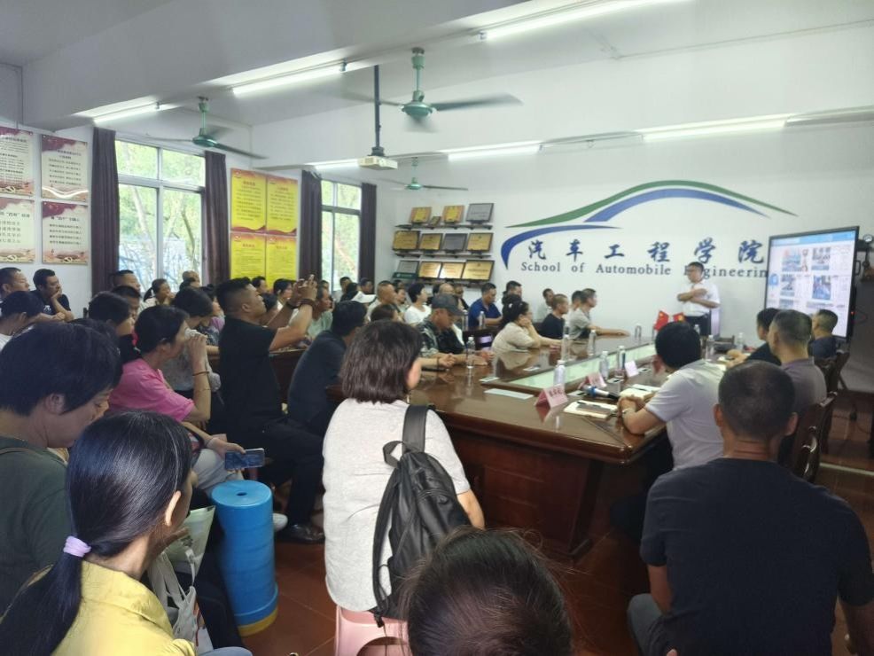会上,陈元华院长向家长们详细介绍了学校的历史沿革、办学理念与综合实力,并重点阐述了学院在学科建设、人才培养体系、校企深度合作、创新创业教育以及先进实验实训中心建设等方面取得的丰硕成果。他表示,学院拥有一支高水平的师资队伍和一流的教学科研平台,致力于培养具备扎实理论基础、卓越工程实践能力和创新精神的高素质汽车行业人才,为学生的全面成长成才奠定坚实基础。李中焘副书记就学生工作作专题介绍,他围绕学生管理、学风建设、就业创业、奖助补贷和家校通等方面细致解读相关政策和制度,让家长们对学生在校期间的学习目标、成长规划和生活保障有了清晰的了解。互动交流环节,家长们踊跃提问,气氛热烈友好。学院领导、各专业负责人和辅导员就家长普遍关心的专业发展、课程设置、校园生活、安全管理等问题进行了耐心细致的解答,消除了家长们的疑虑,增强了家校之间的信任与沟通。