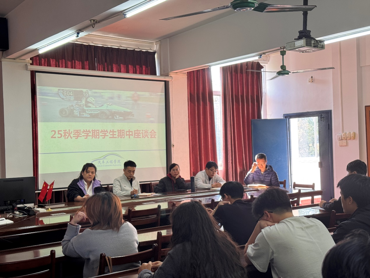 11月14日中午,学院会议室召开2025年秋季学期期中学生座谈会副院长莫德赟、院长助理、各教研室负责人及36名班级学生代表参加了本次会议。