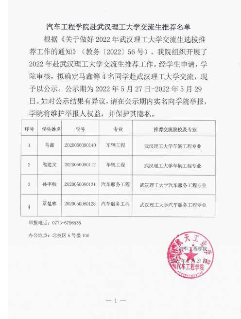 【名单公示】伟德国际1949始于英国赴武汉理工大学交流生推荐名单