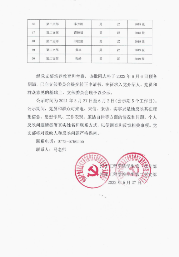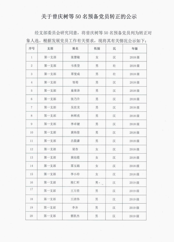 【转正公示】关于曾庆树等50名预备党员转正的公示