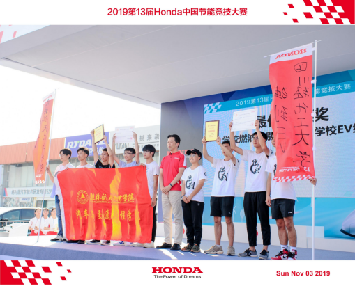 本田中国第13届节能竞技大赛于2019年10月31日至11与3日在广东国际赛车场(广东·肇庆)举行,来自全国的168支队伍汇集肇庆开展为期三天的节能竞技比拼,他们分别是来自企业组和高校组的车队。我院梦飞节能车队在郭华礼和韦鉴峰两位指导老师的带领下参加此次高校组节能竞技大赛,并获得最佳新秀奖。