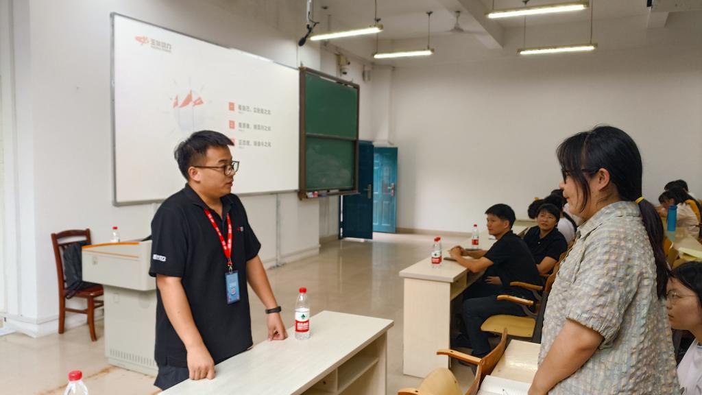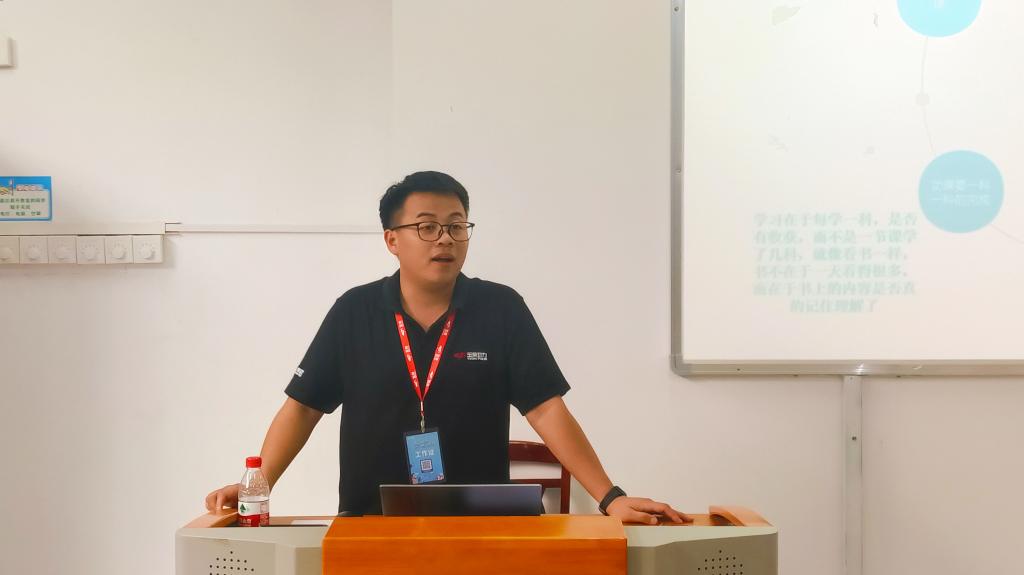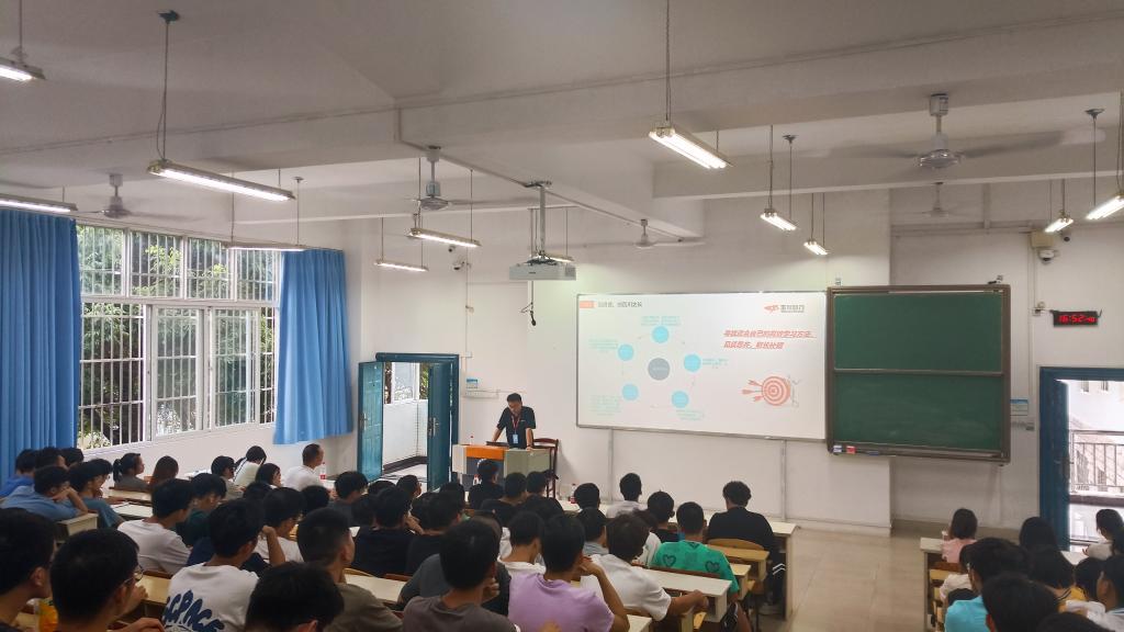 论坛中,赖杰分享了学习经历和工作经验,从三个方面与学弟学妹进行了交流:一是看自己,立赶超之志,告诉同学们学会审视自我,明确目标,积极参加社团组织和技能竞赛,不断创新,不断进步。二是看贤者,纳百川之长,指出高中与大学学习的差异性,大学重在夯实专业和培养能力,高效学习,见贤思齐,取长补短。三是正态度,扬奋斗之风,用奋斗擦亮青春底色,以实干担当时代重任。