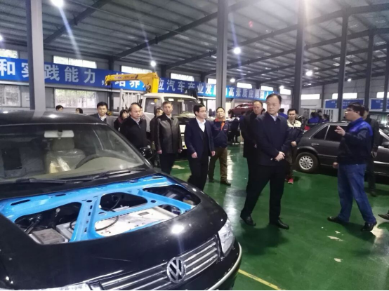 在车辆工程训练中心,我院陈元华副院长详细介绍了学院实践教学与学生创新创业工作开展情况。黄俊华详细询问了学院的专业设置、实验室建设、师资队伍建设等情况,对我院教师的爱岗敬业精神给予肯定,并就学院发展提出了指导意见。