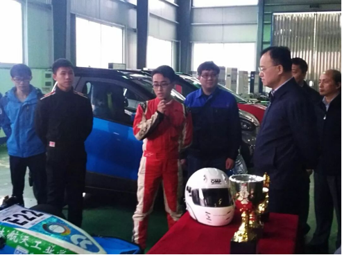 最后,大学生创新团队—航V大学生方程式车队队长李昌日对我院航V车队的发展历程、赛车制作过程以及历届比赛成绩做了简单的介绍,当黄俊华得知由我校师生独立设计制作的“航V”大学生方程式赛车在全国比赛中屡获大奖时,他积极评价了我校师生的创新能力,鼓励我校师生再接再厉刷新佳绩。