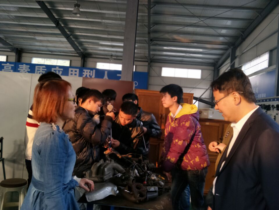 随后,在我院王国富院长的陪同下,寇部长参观了我院的实训中心,现场了解了我院的实验室设备、车间、航V车队的工作车间,寇部长极力称赞我院完善的实验设备以及航V车队的研发成果。