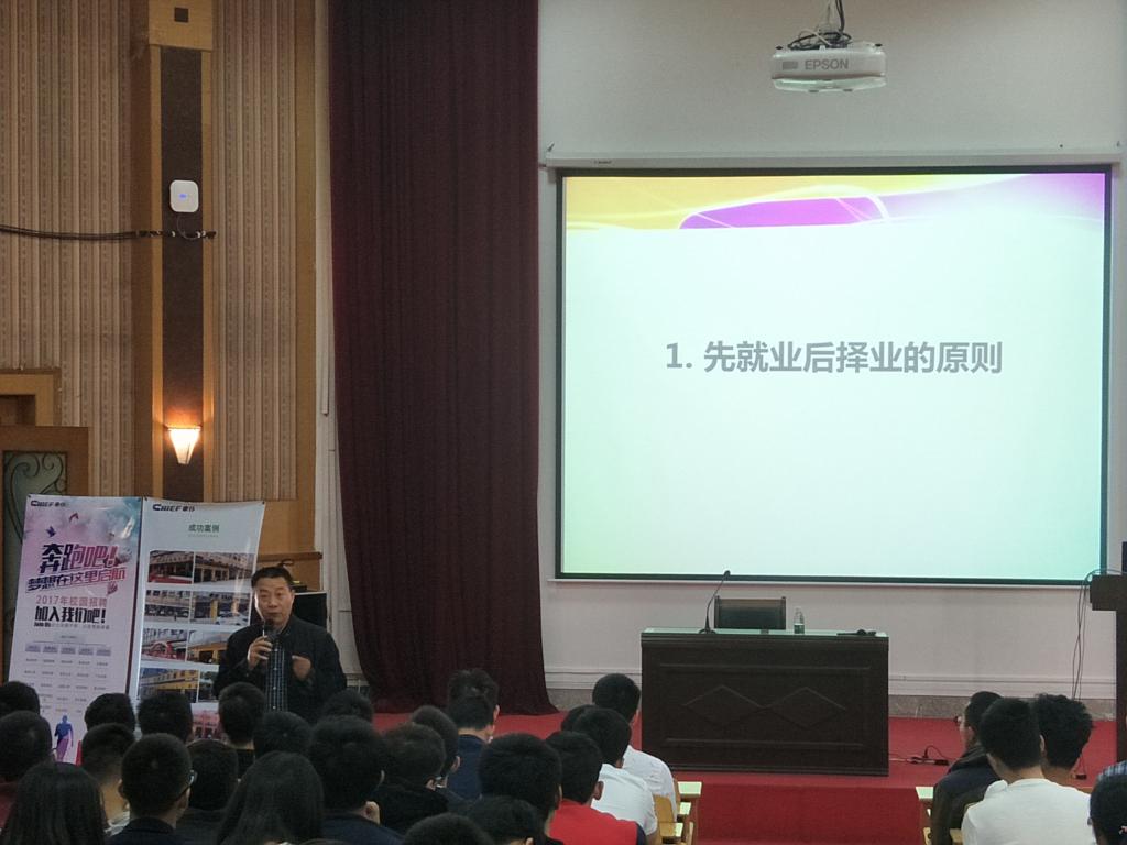 紧接着车仆集团汽车服务有限公司的赵总和人事主管分别向学生们详细介绍了公司的情况、招聘岗位的主要内容、薪资待遇、未来发展趋势等内容。紧接着同学们踊跃投简历,下午进行面试。