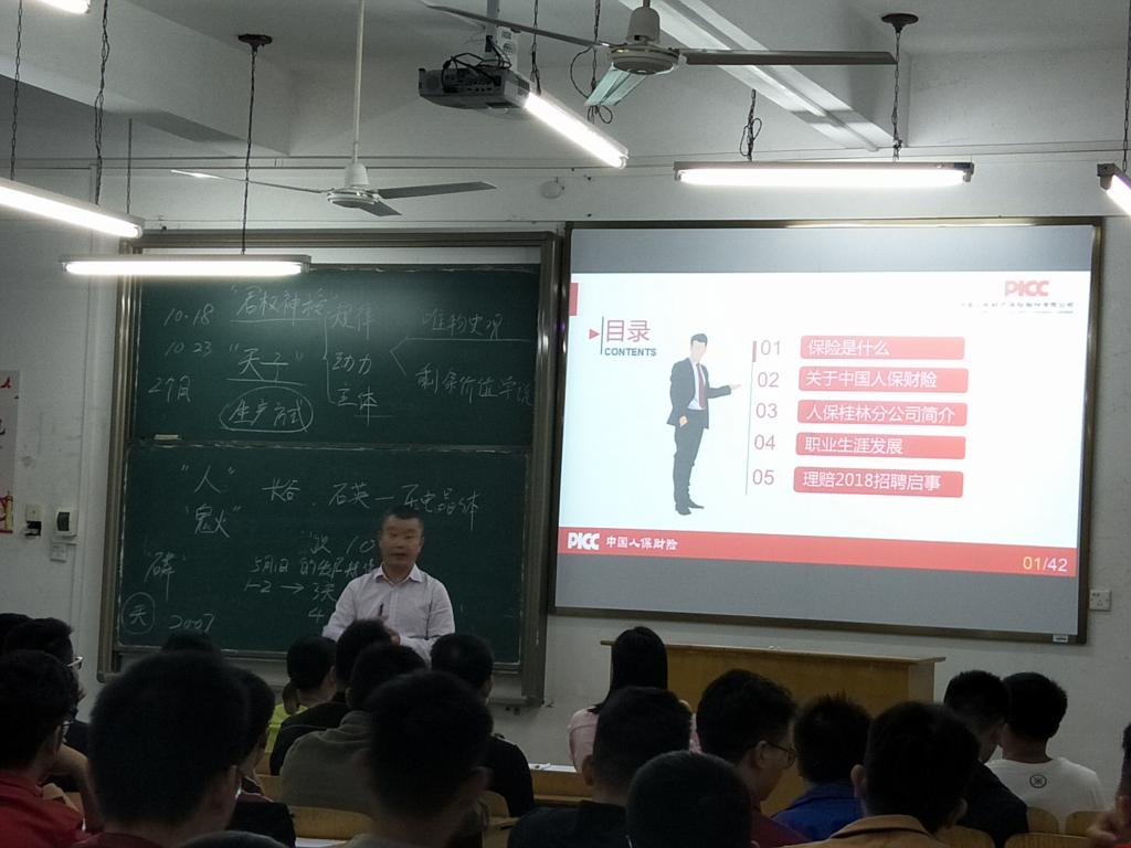 2017年10月26日晚上19:00,中国人民财产保险股份有限公司桂林分公司2018年理赔服务人员招聘会在汽车与交通工程学院如期举行!此次招聘会是面向我院2014级毕业生的专场招聘会!