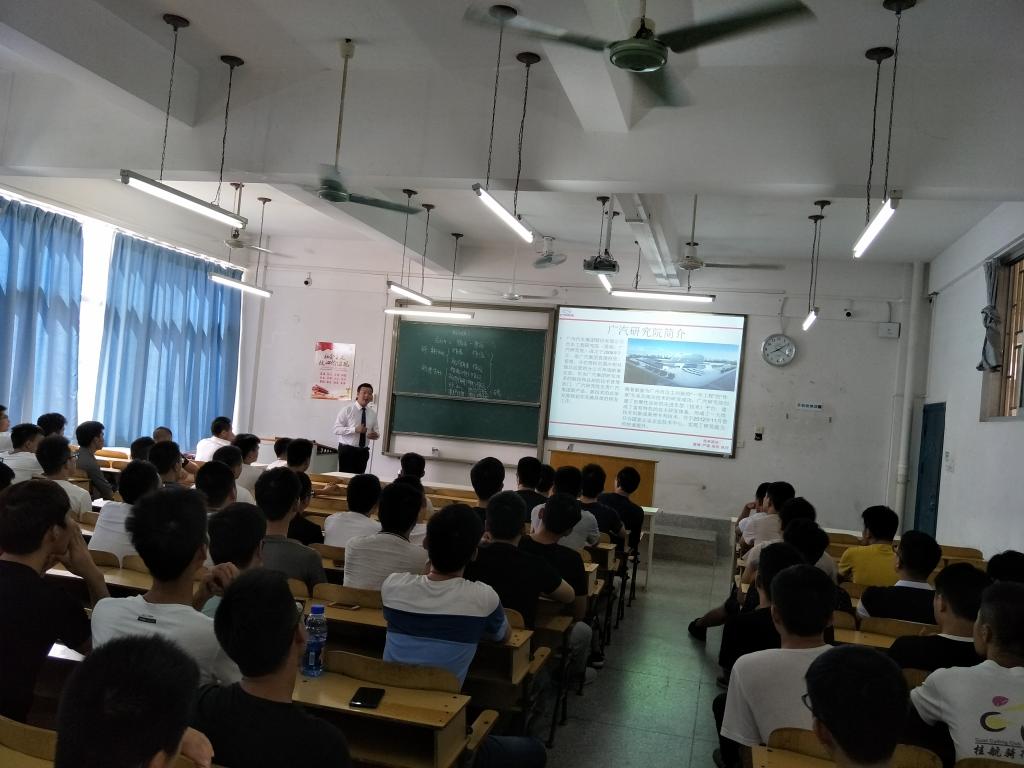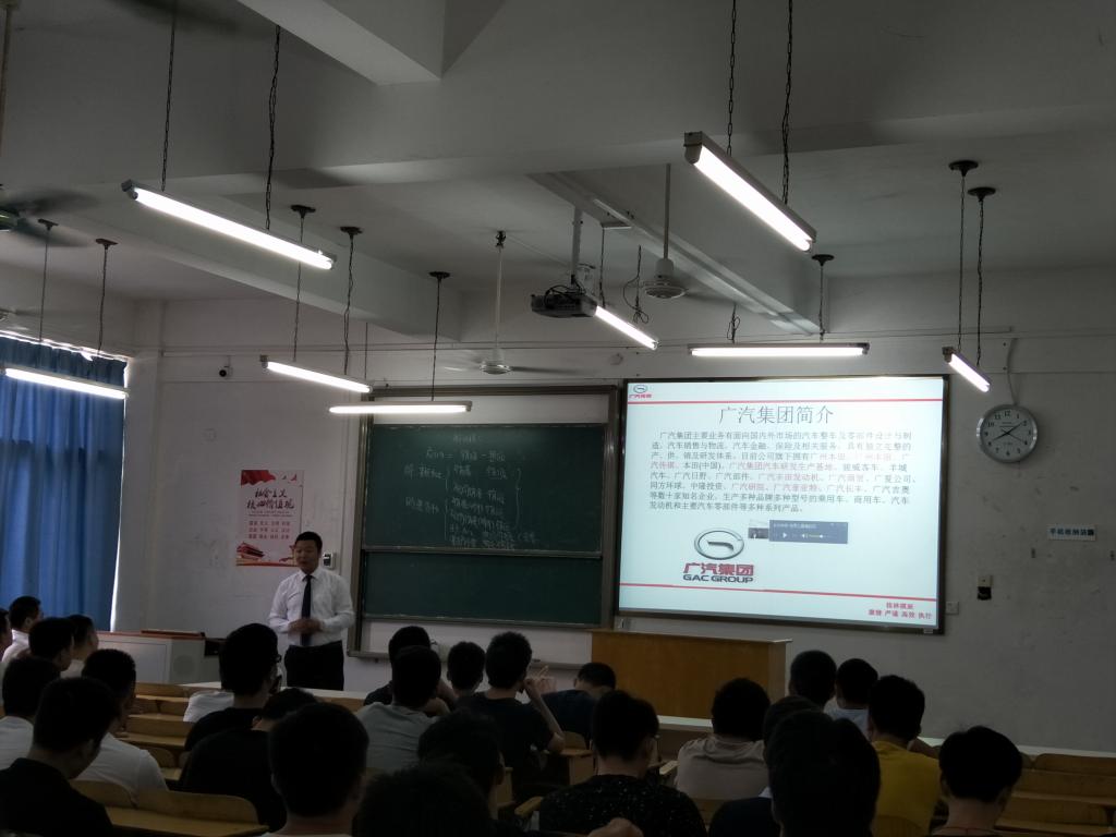 2017年9月26日14:30,在致远楼201教室,汽车与交通工程学院2014级汽车服务工程与车辆工程专业的全体毕业班学生迎来了属于他们的第一场专场招聘会。举办招聘宣讲会的是广汽传祺汽车公司的戴总和王经理。