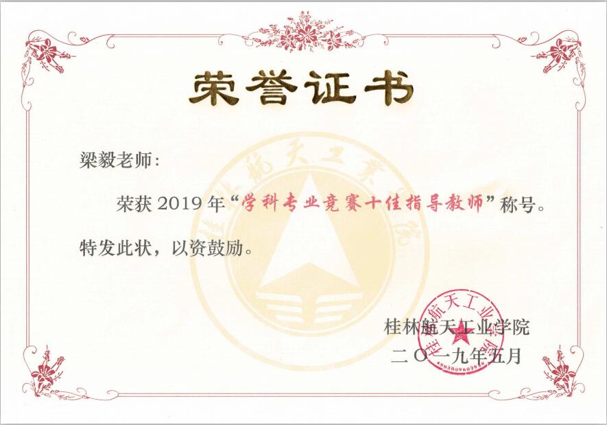 我院教师梁毅荣获2019年“学科专业竞赛十佳指导教师”称号