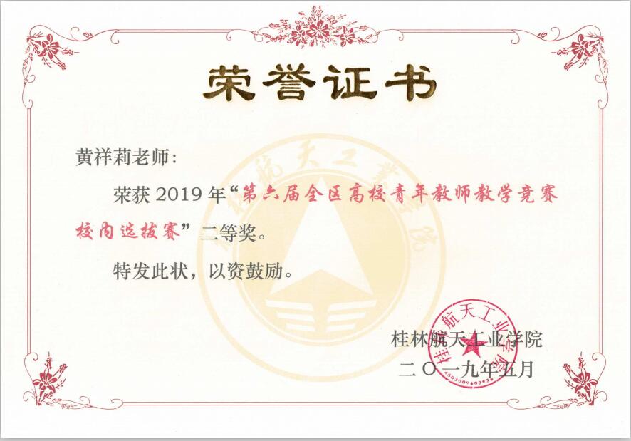 我院教师黄祥莉荣获2019年“第六届全区高校青年教师教学竞赛校内选拔赛”二等奖