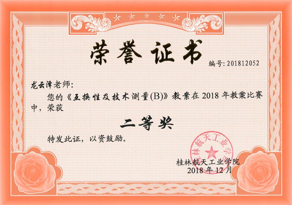 我院教师龙云泽在2018年教案比赛中荣获二等奖